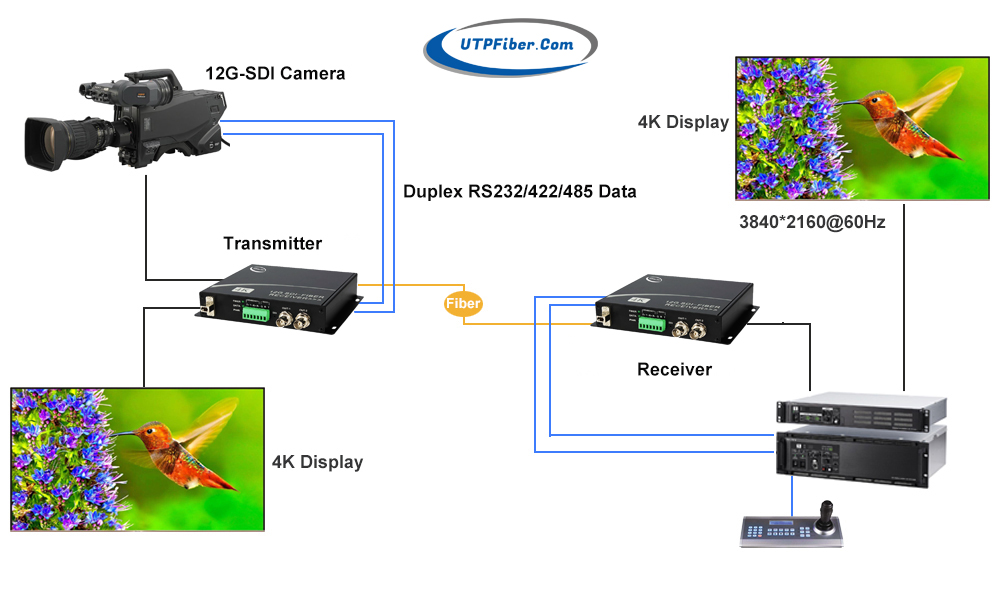 Both transmitter and receiver provide equalizing and re-clocking at input unit in order to re-construct the signals and keep the integrity of signal quality. The UF-12GSDI-1V1HD is perfect for today’s broadcast or surveillance applications, including super long ranged A/V & serial control transmission, video production, video editing, studio to studio and studio to CATV head end. UF-12GSDI-1V1HD is equipped with bi-directional RS-232/422/485 serial port control. This bonus feature allows users to boost RS-232/422/485 control distance up to 20km through optical fiber cables. In addition, since the optical transmission is inherently secure and immune to the outside electronical interferences, the potential applications are particularly favored in government, military, and medical environments.