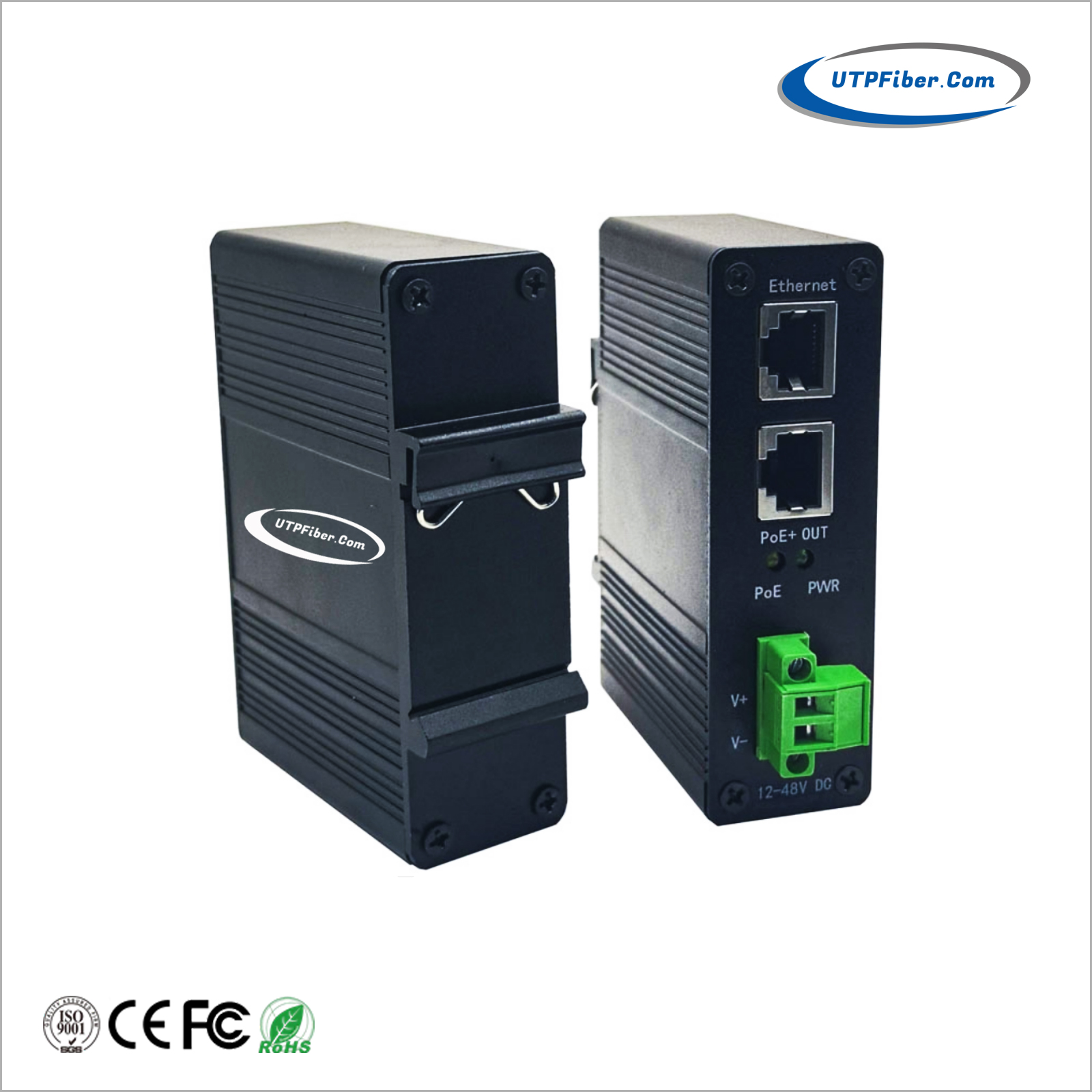 The UF-IPOE-P24V product is a Hardened Gigabit High Power PoE Injector allows you to connect the 24VDC non-standard PoE device such as camera and access point with a non PoE LAN switch within the distance of 100m. Both the Ethernet port (to switch) and the PoE Out port (to PoE device) support 10/100/1000Base-T and are compliant with IEEE 802.3ab. UF-IPOE-P24V provides an integrated power solution with a wide range input voltage of 12-48VDC for high availability applications.