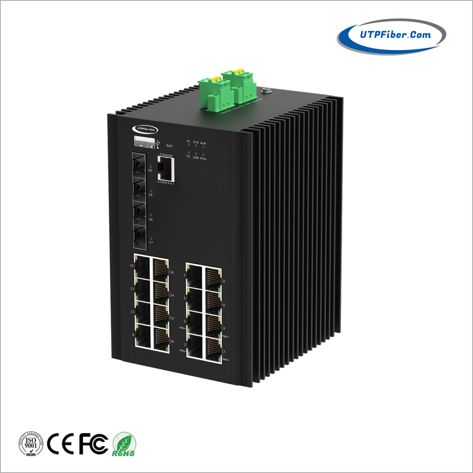 The UTP UF-MIS6416G-SFP series are the highly reliable Layer 2+ managed industrial Ethernet switches with 16-port 10/100/1000Base-T RJ45 and 4-port 1G/2.5GBase-X SFP. With full gigabit capability, it can provide high performance and the ability to quickly transfer large amounts of video, voice, and data across a network. They supports DI/DO/RS485, G.8032 ERPS, MSTP/RSTP/STP redundancy technologies, IPv4/IPv6 static routing, DHCP server and robust Layer 2 management and secure function, which all making them ideal for large-scale industrial networks.