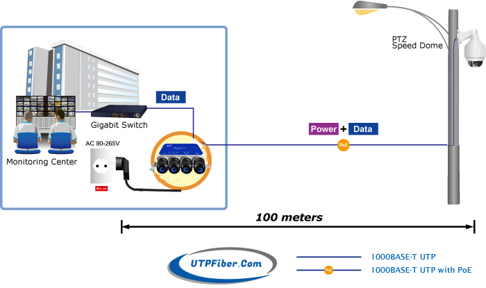 ► Two 10/100/1000Mbps RJ45 port for Data+ Power output and Data input