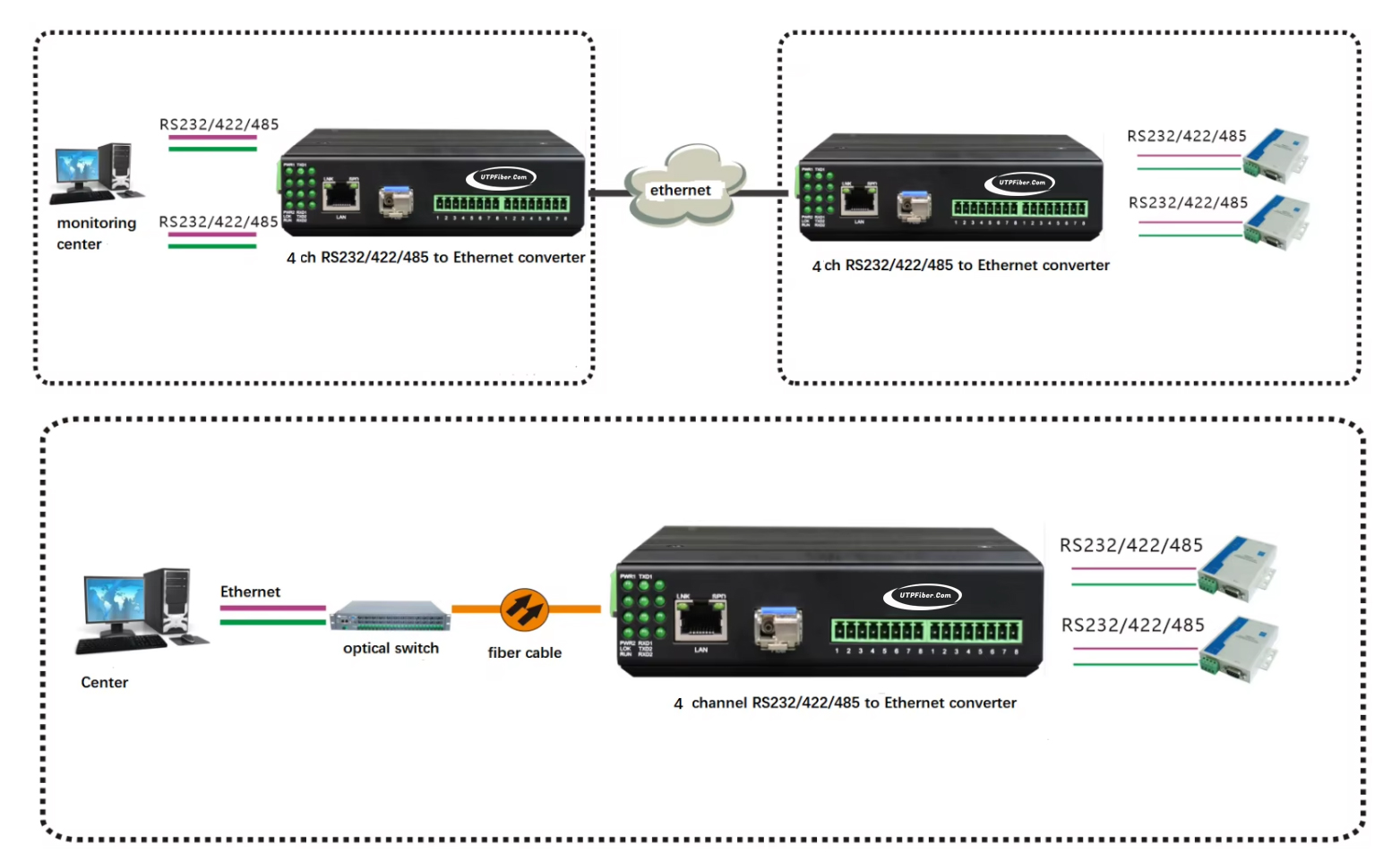 1~4 channel RS232/422/485 serial terminal interface |