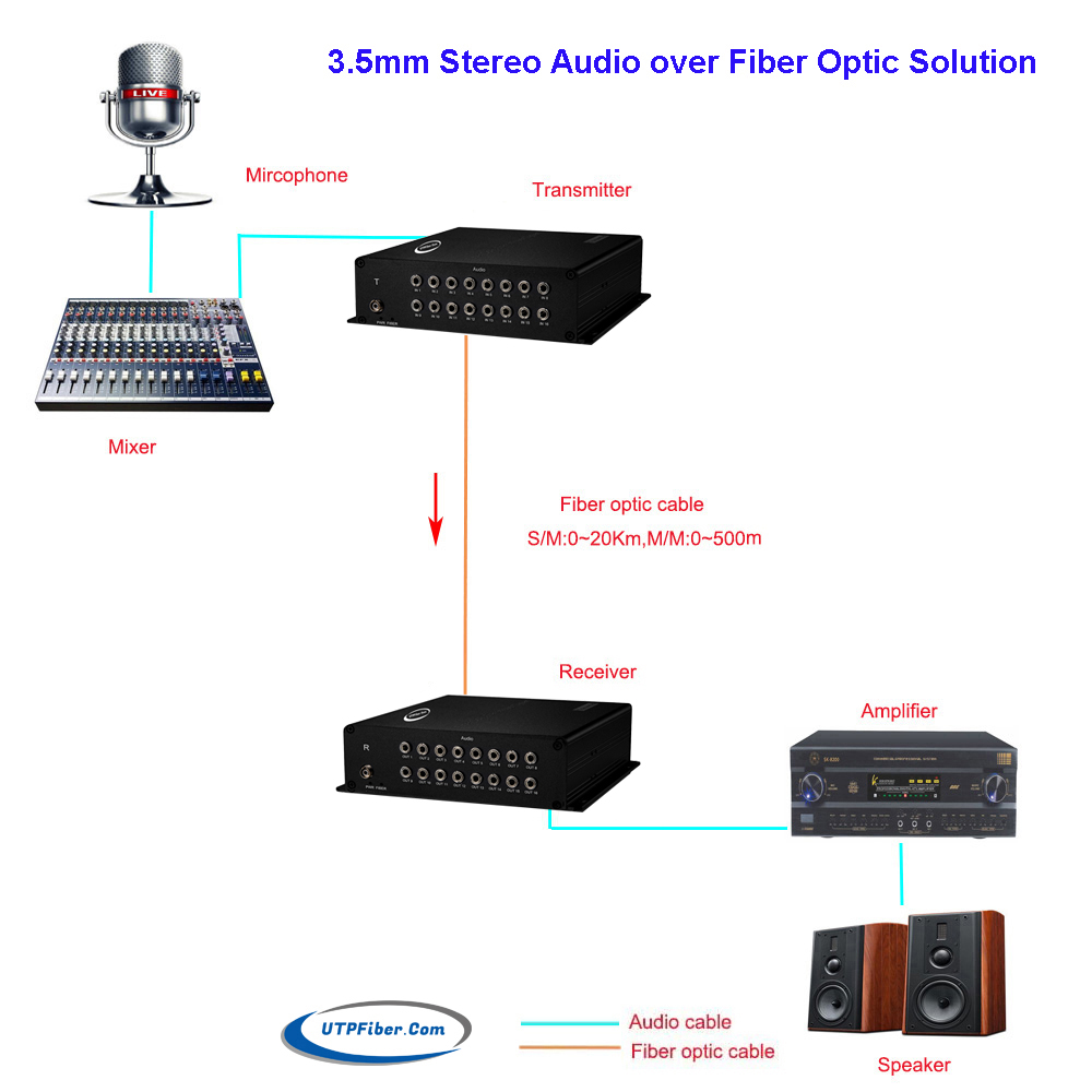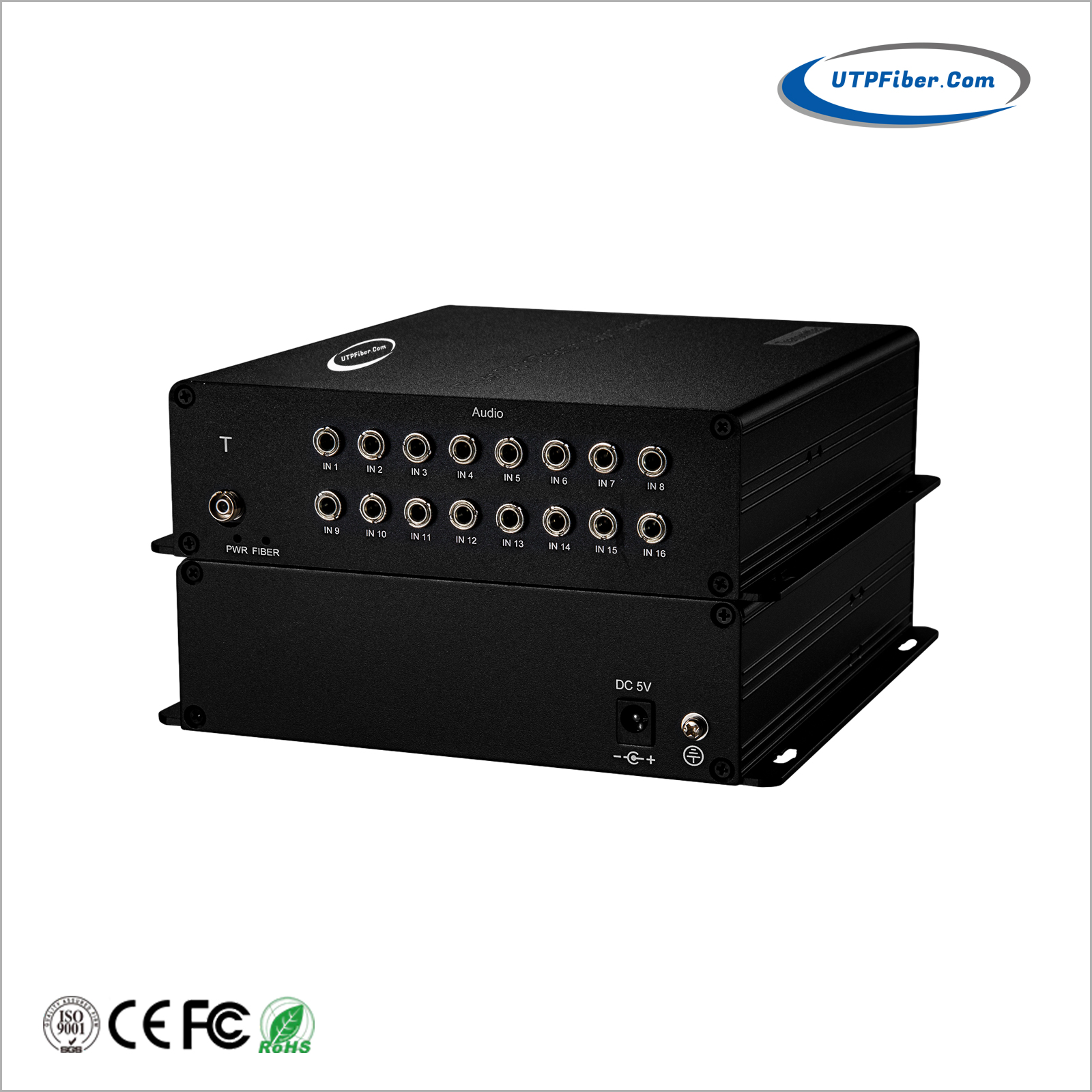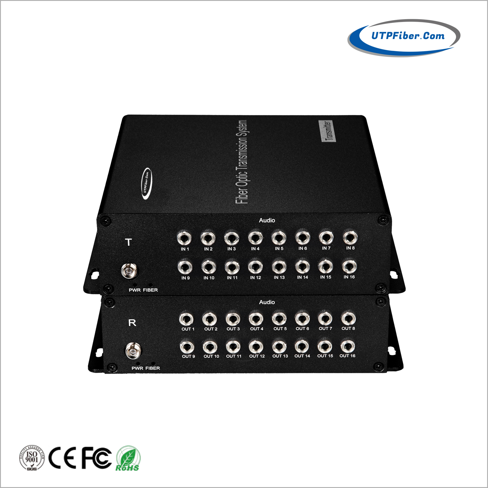 16-Channel Forward 3.5mm Stereo Audio over Fiber Converter, Single Mode, Single Fiber, FC 20KM, including Transmitter & Receiver, used by pairs |
