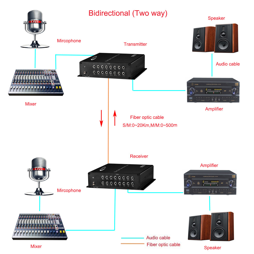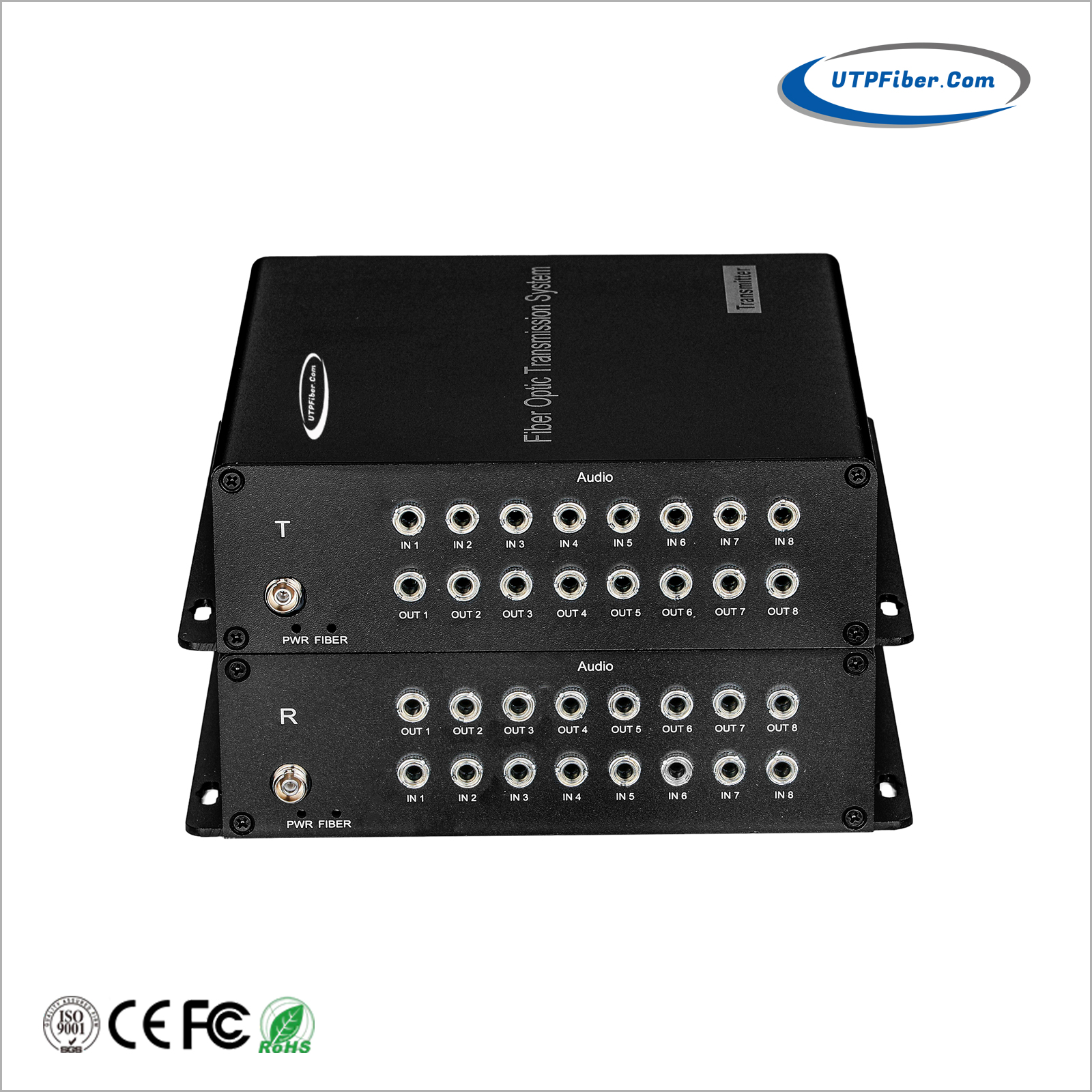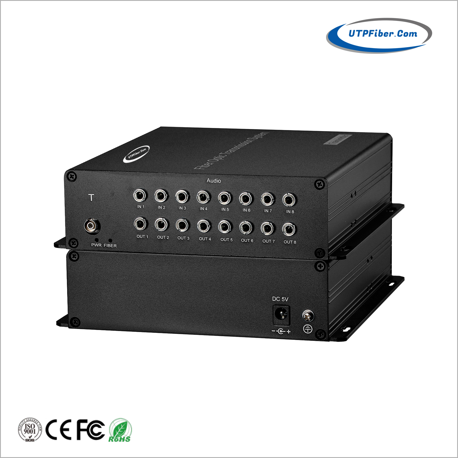 8-Channel Bi-directional 3.5mm Stereo Audio over Fiber Converter, Single Mode, Single Fiber, FC 20KM, including Transmitter & Receiver, used by pairs |