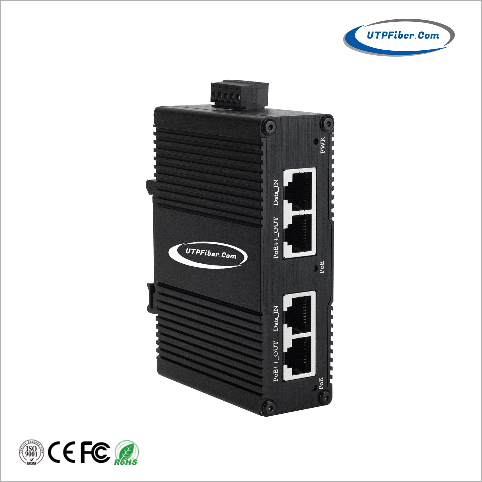 ► With 2 PoE output Ports, supports IEEE802.3af PoE (15.4W), IEEE802.3at PoE+(30W), and IEEE802.3bt PoE++(95W)