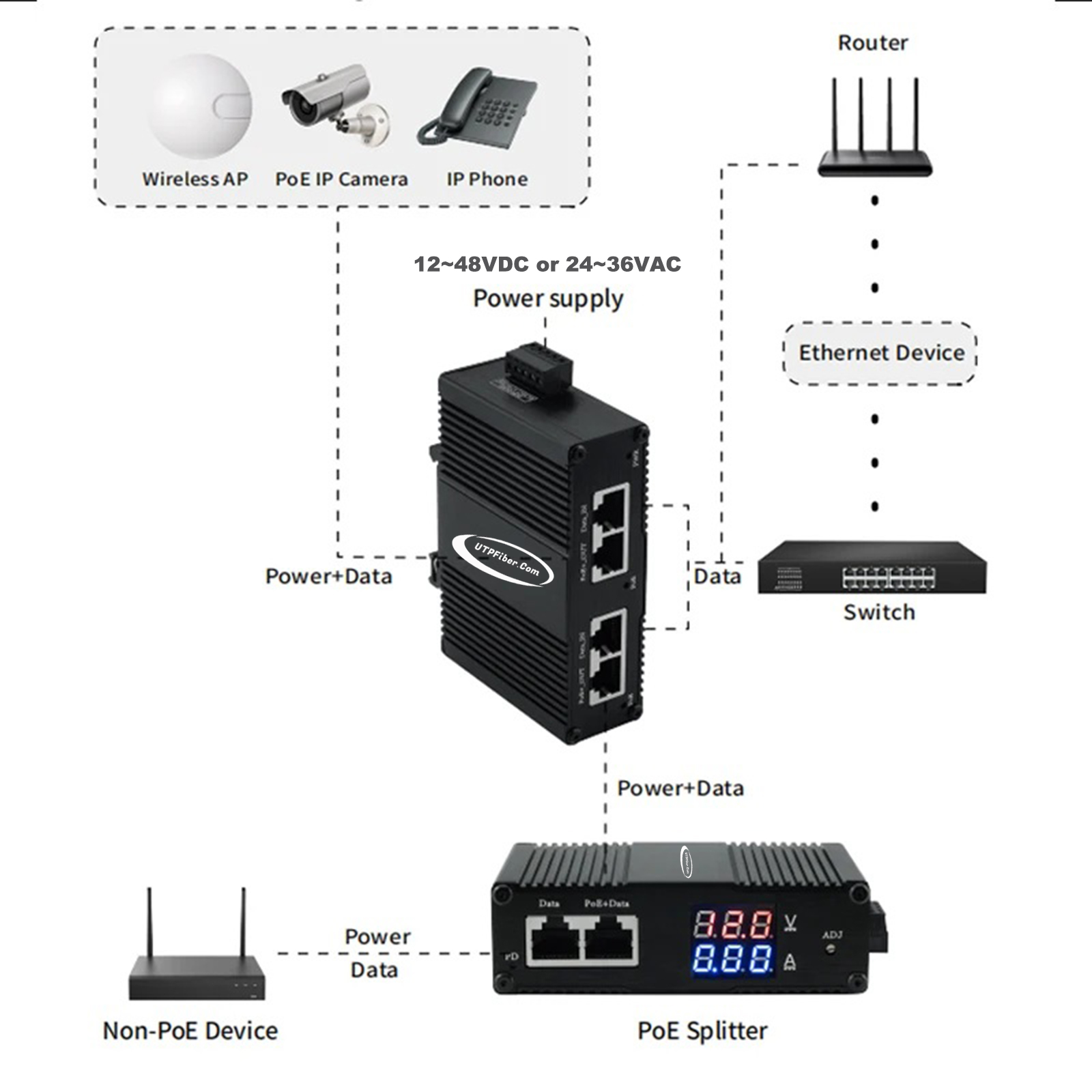 Accessories► Support 12~56VDC Input and boost to 48V PoE output