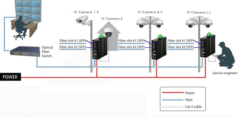 1. Fiber redundant 2. Fiber port 100/1000M selection 3. 250m long distance mode(1-2 ports) 4. PoE watchdog |