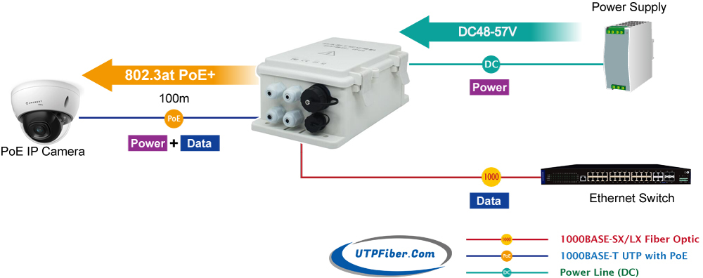 UF-WP102GP Series Waterproof Fiber PoE Media Converter is a crucial tool allowing enterprises to utilize fiber optic link and supply PoE over long distance even at outdoors. UF-WP102GP is the industrial-grade Gigabit PoE+ Media Converter, featuring one 1000BASE-X SC fiber port and two 10/100/1000BASE-T 802.3at PoE+ copper ports in an IP66 rugged but compact-size case. Being able to operate under the temperature ranging from -20 to +85 degrees C, the UF-WP102GP provides reliable, stable and continuous long-range data transmission and can be installed in any harsh environment without taking space into consideration. Adding this device, you are able to setup IP devices over kilometers with fiber optic cable without concerns about bad weathers and tough operation conditions due to its IP66 waterproof and harden grade design.