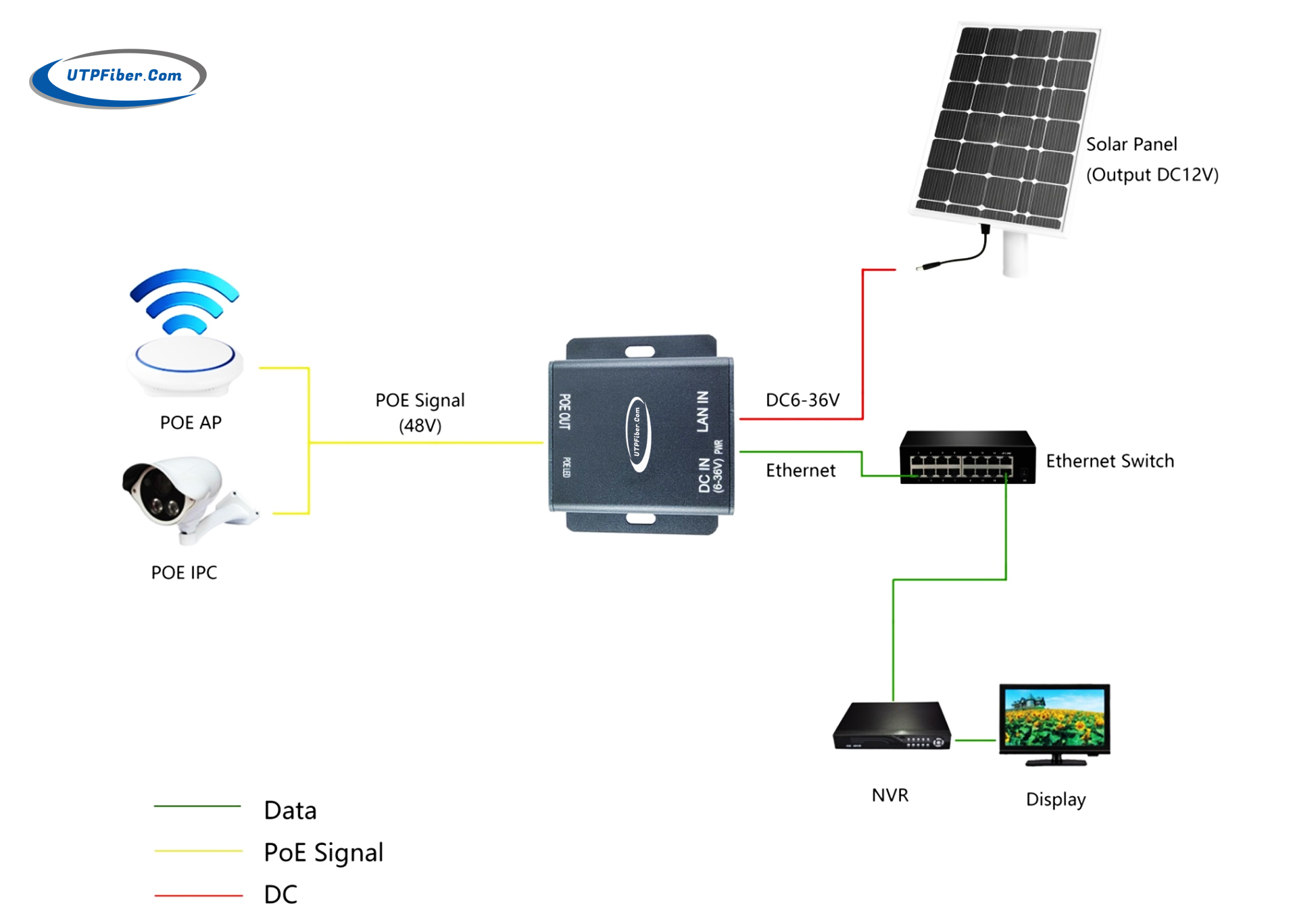 ► Injects 48V DC through a CAT 5 cable, use all 2 pairs into remote devices such as wireless AP, IP phone, web camera and other functions